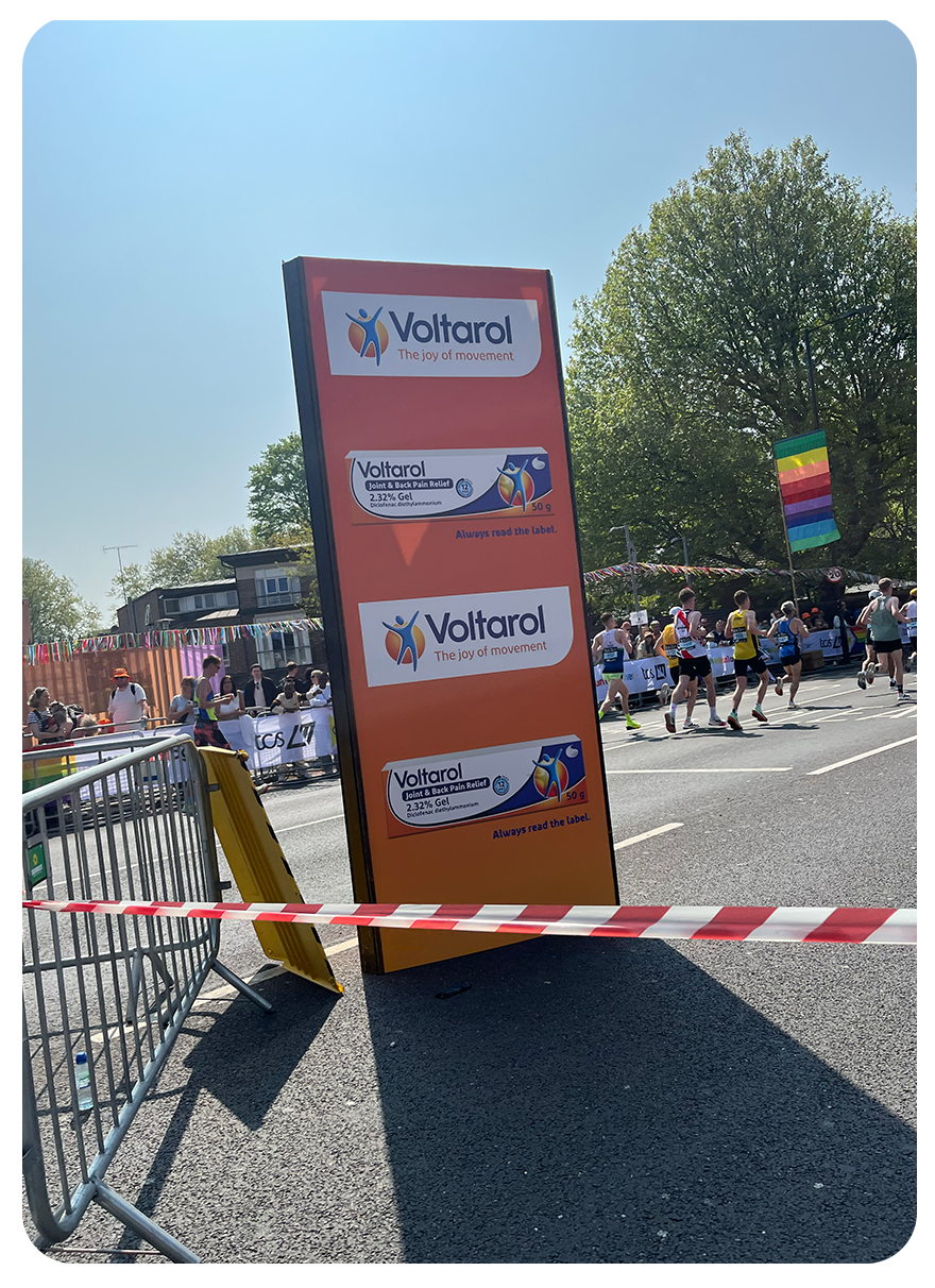 Voltarol's sponsorship of the Massage Zone showcased the brand's dedication to supporting recovery and performance. The fully branded space offered runners pre-race massages in a restorative environment. This presence reinforced Voltarol's positioning as a trusted ally in helping active individuals prepare, perform, and recover.