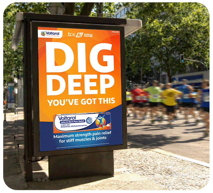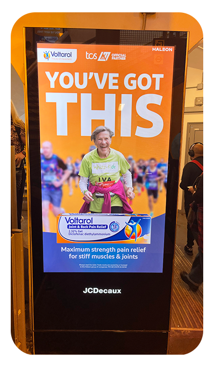 The Voltarol campaign delivered strong performance across brand visibility, engagement, and commercial impact, demonstrating the effectiveness of its integrated strategy. High-impact media placements, including a YouTube masthead takeover and a Meta moment over marathon weekend, secured premium visibility at a key cultural moment and increased relevance among younger, active audiences. This was reinforced by a dynamic out-of-home presence across London and major transport hubs, keeping Voltarol top of mind throughout the marathon period.